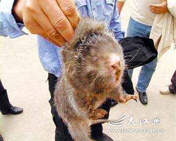 22日凌晨,南昌市衛(wèi)東花園1期的保安室闖進來一位“稀客”,它嘴巴像豬、牙齒像兔、爪子像老鼠,全身灰黑色長皮毛,身長約30厘米。這樣一個小動物頓時就成為了小區(qū)里的“小明星”,可駐足觀看的居民都叫不上它的名字。