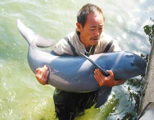 “據(jù)漁船上的漁民介紹,這條小海豚原本是和幾條大海豚一起的,結(jié)果被漁船沖散了,小海豚誤撞漁網(wǎng)!蓖跸壬f。他看到小海豚還活蹦亂跳的,覺得讓它成為盤中餐太可惜,就以1000元的價(jià)格將海豚買回,放養(yǎng)到自家的蝦池里準(zhǔn)備放生。