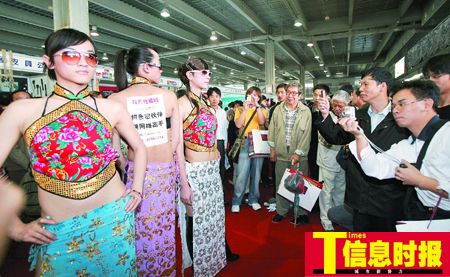 在昨天的展銷(xiāo)會(huì)上,一個(gè)位于“內(nèi)衣秀”表演舞臺(tái)一側(cè)、售賣(mài)各類(lèi)“性知識(shí)教學(xué)片”的攤位吸引了大批市民的駐足。記者發(fā)現(xiàn),這些印有“廣東汕頭某出版社出版”的“教學(xué)教材”的光碟封面上,無(wú)論名稱、宣傳語(yǔ)和封面均十分露骨。當(dāng)記者問(wèn)及這些光碟是否正規(guī)出版物時(shí),攤位的銷(xiāo)售人員表示這類(lèi)光碟屬于正常的出版發(fā)行物,但只能針對(duì)成人銷(xiāo)售。