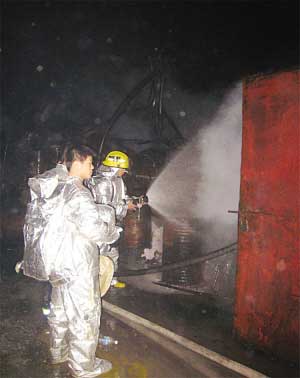 江寧區(qū)消防大隊東山中隊的中隊長鄭先平告訴記者,到達現(xiàn)場前,1號儲罐已經(jīng)發(fā)生爆炸,火焰有幾十米高,爆炸后,產(chǎn)生的流淌火在地面上蔓延,離1 號儲罐相隔兩米遠的2號儲罐周圍擺了兩百多個塑料桶,桶內(nèi)裝的是廢棄乳化液。流淌火吞噬了塑料桶,接著,一個個裝廢棄乳化液的桶就像一串串鞭炮一樣跳躍著炸了起來。此時,中隊的三名班長和一名新隊員一邊抱水槍給2號儲罐降溫,一邊向廢棄乳化液桶上噴灑泡沫,但火勢太猛根本無法控制。塑料桶爆炸氣浪擊起的廢棄乳化液濺到了他們的面部和眼睛,他們四人頓時感到眼睛紅腫,皮膚有灼痛感,大家并沒有后退,而是戴上空氣呼吸器繼續(xù)戰(zhàn)斗。此時,鄭先平見情況不妙,2號罐已經(jīng)被大火吞噬,漸漸地罐體被燒得通紅,眼看支撐罐體的鋼架也要被高溫熔化了,鋼架的松動發(fā)出“咯咯”的響聲,隨時有倒塌爆炸的危險,鄭先平立即命令所有隊員后撤。大家接到后撤命令后迅速跑開,剛撤出不遠,身后發(fā)生天崩地裂的巨響,2號儲罐爆炸了,幾十米高的火焰在夜空中拼命地扭動著“身軀”。直到其他消防車和隊員們相繼趕到,大家繼續(xù)和火魔戰(zhàn)斗。被廢棄乳化液噴濺的三名班長和一名隊員傷情逐漸明顯,連夜被送到醫(yī)院救治,目前已無大礙。據(jù)了解,爆炸的兩個儲罐內(nèi)裝的都是廢棄乳化液,兩個儲罐加起來重量達30噸。
