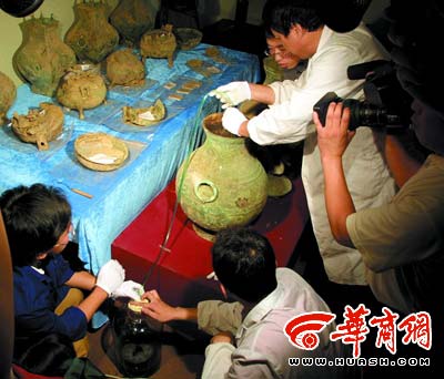 省市考古專家對現(xiàn)場進行了勘察。經(jīng)多數(shù)專家初步斷定,壺內(nèi)液體是罕見的“戰(zhàn)國美酒”,考古人員隨即將液體直接送往北京鑒定。