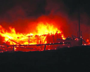 就在船主專心致志捕魚之際,突然他感到江面映出火苗的光亮;仡^一看,只見船艙里冒出一片火來,“不得了,怎么失火了?”船主大吃一驚,連忙丟下漁網(wǎng),拎起一桶水就潑過去,但杯水車薪,根本不管用,火勢越來越大,他將帶繩的桶扔到江里,想從江里打水上來撲火,但還沒等打上來第一桶水,剎那間,整個船艙就成了一片火海。由于火勢兇猛,他的頭發(fā)眉毛都被燒焦了。看著眼前所有東西都著火了,他意識到還是逃命要緊,被迫棄船,轉(zhuǎn)身向船頭跑去,對著江里的棧船就跳了過去。船主剛跳上棧船,就聽后面“轟”的一聲巨響,放在船艙里的那桶柴油也被燒著了。