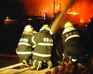 火情就是命令。接警后,下關(guān)消防中隊3輛消防車迅速趕往江邊,消防隊員將消防車停在江邊大堤上,然后懷抱水槍,沖上棧船,隔著數(shù)米遠距離向起火的船噴水。