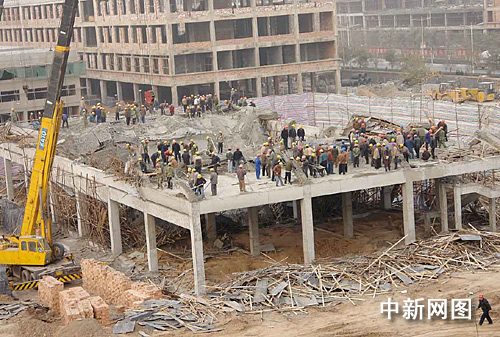 從周邊的居民處了解到,該車站由浙江的一家工程公司負責承建,建成后將把現(xiàn)在的侯馬西站搬遷過來,以成為侯馬北方輕工城的配套設(shè)施。昨天下午三時政府才在這里剪彩搞了典禮活動,活動結(jié)束后施工方就開始給二樓樓頂灌漿,到今天凌晨一時左右,工人正在作業(yè),就出事了。
