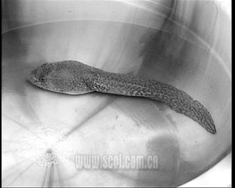 大千世界,無奇不有。記者在廣安市鄰水縣見到了一條 “怪魚”:全身沒有魚鱗和魚須,也沒有胸鰭和腹鰭,像蝌蚪又非蝌蚪,似鰻魚而非鰻魚,其叫聲像野雞(右圖)。廣安水產(chǎn)專家也不知其為何物。