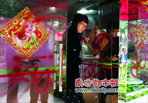 前日上午,深圳某電視頻道“Happy跟我走”節(jié)目制片人張某A發(fā)現(xiàn),該節(jié)目位于商報路景樺花園B棟的制作基地玻璃門上被噴涂了詛咒大字。昨日記者在現(xiàn)場看到,該處玻璃大門和外墻上分別被用紅色、黑色噴涂上了“死、去死吧”等字樣。張某A同時稱,此前,她曾接到幾十個威脅、恐嚇電話。她認為上述事件同位于南山高新區(qū)的某公司有關(guān),起因是廣告合同糾紛。