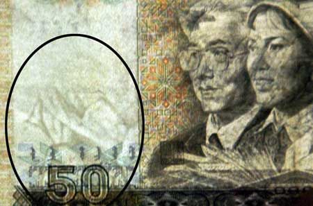 50元人民幣水印印倒了