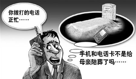 但就在幾天前,陳某一不小心撥打了存在自己手機(jī)里的母親的手機(jī)號(hào)碼,卻聽到了占線的忙音,陳某懷疑自己撥錯(cuò)了,就又撥了一遍,結(jié)果還是忙音。手機(jī)明明下葬了呀,想到這,他不禁出了一身冷汗。晚上,他翻來覆去難以入睡,越想越覺蹊蹺,就把這事告訴了妻子。二人一商量決定第二天到移動(dòng)公司問個(gè)明白。沒想到一問不要緊,更奇怪的事出現(xiàn)了,電腦上竟然顯示出了該手機(jī)在母親去世后一個(gè)月的通話費(fèi)用,夫妻倆面面相覷,心里直發(fā)毛,思來想去,他們決定報(bào)案,讓警方查個(gè)明白。