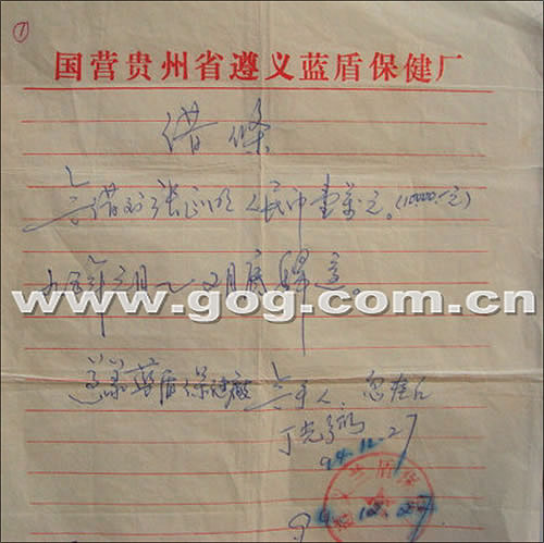 張某的父親告訴記者,兒子入獄兩個(gè)月后,想進(jìn)監(jiān)獄醫(yī)院,以學(xué)得一技之長。鑒此,他找到時(shí)任院長丁光弼要求關(guān)照,丁答應(yīng)讓兒子進(jìn)醫(yī)院,但同時(shí)向他提出了借款1萬元的要求,理由是:監(jiān)獄下屬“三產(chǎn)”企業(yè)遵義藍(lán)盾保健廠缺乏資金。張某父親說,為了兒子,他向銀行貸了1萬元,于1994年12月27日交給丁光弼后,丁和監(jiān)獄醫(yī)院財(cái)務(wù)人員忽桂紅共同在借條上簽了字,并蓋上了“遵義藍(lán)盾保健廠”公章。