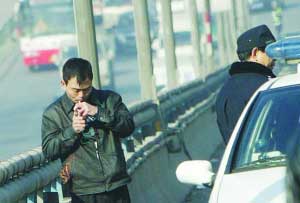 記者站在距他四五米的地方,清晰地看到他的上衣縫里露出紅色的雷管,胸前鼓鼓囊囊,像是捆著什么東西。他靠在護(hù)欄上,不停地抽著煙。警察問他為何要這樣?他大口噴著煙,痛苦地說:“我老婆有別的男人了,要跟我離婚。我太不幸了,你們別管我,讓我自己解決好了!