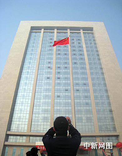 5日上午,鮮艷的五星紅旗在新落成的山西臨汾市公安局作戰(zhàn)指揮中心大樓前冉冉升起。作者:劉一