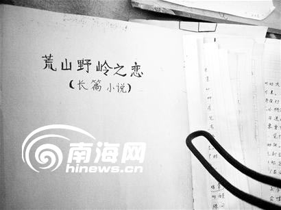 “我愿意是廢墟,在峻峭的山巖上,這靜默的毀滅并不使我懊喪……只要我的愛人是青青的常春藤,沿著我荒涼的額,親密地攀援上升!1月5日上午,在海口瓊山三門坡鎮(zhèn)黃守培的家里,在《荒山野嶺之戀》小說(shuō)手稿的第一頁(yè),記者看到了這段深情告白。