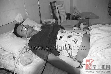 據(jù)主治醫(yī)生張新有介紹,病人剛送醫(yī)院時,駱文龍已經(jīng)有了休克癥狀。手術過程中,臨滄市第一人民醫(yī)院也派出專家組往鎮(zhèn)康趕,由于病人失血過多,一度出現(xiàn)血漿短缺,等到市里專家組到了以后,馬上對病人補充了血漿,手術直到第二天上午才做完。張醫(yī)生說,手術后發(fā)現(xiàn),子彈從駱文龍右肋下穿入,從右腰側(cè)出來,他的肝右翼、膽囊底、胃竇部前后壁、十二指腸水平部都出現(xiàn)破裂。手術以后主要是防止他的十二指腸修補處發(fā)炎漏液癥狀。(劉自學 攝影報道)