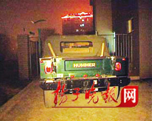 前天晚上9時許,記者接到報料,稱在南京莫愁湖東路126號的君園小區(qū)門前,有人用車堵住了兩個出入口。其中,一輛高大“威猛”的悍馬車擋在了小區(qū)的北門,一輛別克商務(wù)車和一輛桑塔納堵住小區(qū)的西門。