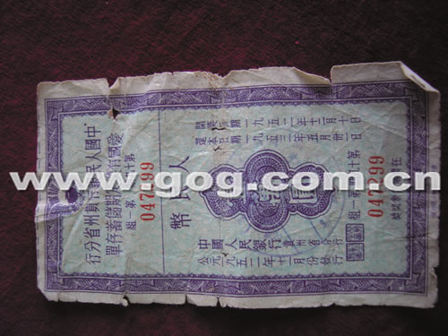 昨日,市民趙女士向本報(注:貴州都市報)熱線6774488反映,父輩給自己留有一張1952年的萬元銀行有獎定期儲蓄存單,她不知道現(xiàn)在是否還能兌換,價值幾何。