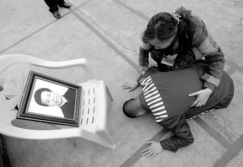 每一次俯身磕頭時,他的額頭都重重地撞在地上。磕了幾十個響頭后,他哭得癱倒在地。當眾人將他攙扶起來時,只見他的額頭破了,留下一個血印。