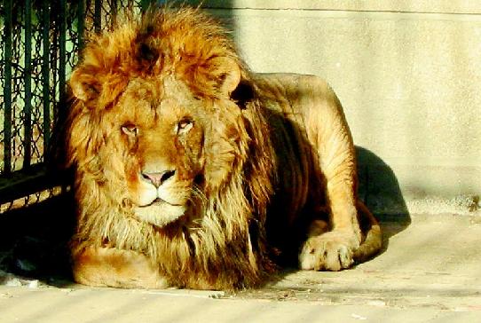 可憐的辛巴昨日黯然靜臥,呆呆地看著籠外。也許,它在想剛剛死掉不久的“怨偶”雌獅嬌嬌。也許,它在傷感:活著的時候天天吵架,現(xiàn)在想找它吵它卻不在了。