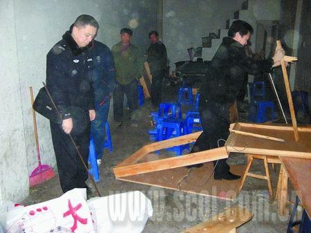 從去年5月起,派出所就經(jīng)常接到群眾舉報(bào),但每次去查賭,都逮不到人。“這些人鬼得很,反偵探能力非常強(qiáng)!本讲粌H逮不到組織賭博的人,就連提供賭場(chǎng)的門面老板都找不到,“這個(gè)門面都不知道轉(zhuǎn)了多少次手了,而且也沒有人愿意說實(shí)話!毕群笈芰藥滋於紱]有找到人,警方于是開始采取搜繳賭具的方法,每出一次警,就叫來三輪車把桌椅板凳全部拉到派出所的一個(gè)倉(cāng)庫(kù)里。不到10天,倉(cāng)庫(kù)都堆滿了。正是因?yàn)閭}(cāng)庫(kù)都裝滿了,現(xiàn)在才采取砸爛賭具的辦法。