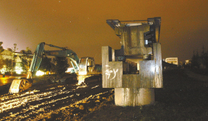 附近青城豪生國際酒店一位自稱酒店的工作人員說,軌道是17日晚11時被敲斷,只剩下3個水泥柱。但具體是誰敲斷的,他并不知道。