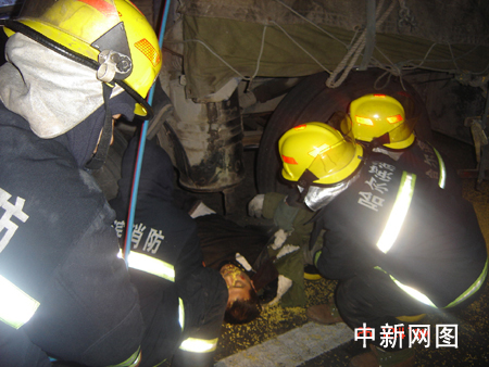 凌時三十分,太陽島消防中隊的消防戰(zhàn)士接到報警立即趕往現(xiàn)場救援。消防戰(zhàn)士趕到現(xiàn)場時看到,一輛被追尾拉著貨物的大貨車車頭與車廂之間夾了一個人,在車廂左側底下前輪旁還躺著一名男子已經(jīng)死亡,該男子穿著一件軍大衣被卡在車輪下。消防戰(zhàn)士將駕駛室后面的拉桿鋸掉,用液壓破拆組合工具將車廂與車體支開一定的距離,之后將安全繩系在被困男子的腰部,將被困人員救出,F(xiàn)場可以看到,后面的大貨車已經(jīng)嚴重變形,駕駛室與前車車廂融為一體,車上的兩人已經(jīng)被送往醫(yī)院。
