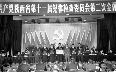 在昨日的會(huì)議上,省委辦公廳、省政府辦公廳作出了《關(guān)于表彰獎(jiǎng)勵(lì)查處省高速公路建設(shè)集團(tuán)公司原董事長(zhǎng)、黨委書記陳雙全等人違紀(jì)違法案先進(jìn)集體和有功人員的決定》:對(duì)省紀(jì)委709專案組記集體一等功一次,對(duì)省紀(jì)檢監(jiān)察系統(tǒng)、省審計(jì)系統(tǒng)、省公安廳、西安市檢察院的54名有功人員分別記一等功、二等功、三等功和嘉獎(jiǎng)一次的獎(jiǎng)勵(lì)。省委書記趙樂(lè)際,省長(zhǎng)袁純清,省委副書記王俠等領(lǐng)導(dǎo)為先進(jìn)集體和有功人員頒發(fā)了證書。