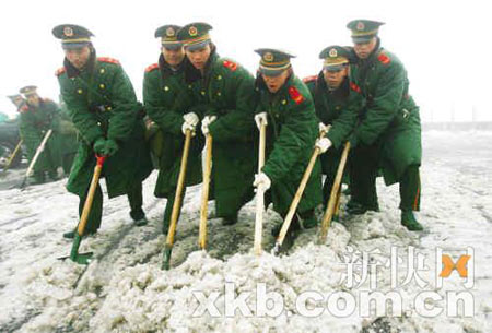 目前梅花至大橋(K24-K51)雙向結(jié)冰仍很嚴(yán)重。截至昨晚9時(shí),因?yàn)樘靸鱿掠辏┲楸彪p向繼續(xù)封閉。從湖南郴州方面獲悉,郴州軍分區(qū)已調(diào)派裝甲車趕赴重災(zāi)路段進(jìn)行碾冰任務(wù)。由于有新冷空氣補(bǔ)充南下,粵北地區(qū)持續(xù)降溫,氣溫基本維持2℃-5℃,最低氣溫為-1.8℃,濕度達(dá)95%,同時(shí)還下起了中雨,又起了大霧,能見度不足30米。惡劣的天氣給京珠北破冰工作帶來了很大壓力。昨天,京珠投入的機(jī)械設(shè)備增到260臺(tái)套,分80個(gè)班次不停作業(yè)。這些機(jī)械包括鏟車38臺(tái)、推土機(jī)16臺(tái),人員約1500人。昨天破冰里程已經(jīng)達(dá)到52公里,但由于下雨及路段最低溫度已降至-3.8℃,結(jié)冰始終在加劇。前晚已經(jīng)打通的南下通道,進(jìn)入晚間后再次出現(xiàn)持續(xù)降雨及氣溫迅速下降現(xiàn)象,路面再度迅速結(jié)冰,并逐步加劇,達(dá)到65公里左右。