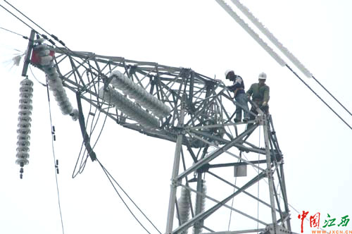 在電力“援兵”的強力增援下,萍鄉(xiāng)電網(wǎng)抗冰搶險的隊伍進一步壯大,搶修進度大大提升。經(jīng)過供電員工的奮力搶修,截至1月31日,110千伏跑高線成功打通送電,恢復(fù)21條35千伏及以上線路供電,變電站9座,供電臺區(qū)579個;目前,200余名增援隊伍正分別在220千伏跑袁(萍鄉(xiāng)跑馬坪至宜春袁州)Ⅱ線和萍五(萍鄉(xiāng)電廠至五陂下)線上進行搶修,力求在最短的時間內(nèi)恢復(fù)對這兩條與江西主網(wǎng)相聯(lián)的重要線路送電。