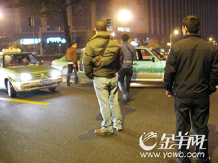1月31日晚9時(shí)30分到11時(shí)40分期間,記者在中國(guó)大酒店對(duì)開(kāi)的解放北路北行路段觀察時(shí)發(fā)現(xiàn),在人群中有一批人,他們不是在等的士,而是逢人便問(wèn)“去哪里?”“要不要打的?”等問(wèn)題。