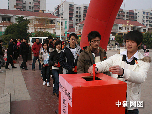 中新網(wǎng)韶關(guān)2月10日電 (馮昶 朱祖純 曾誠(chéng)) 大年初三,廣東南雄市三影塔景區(qū)廣場(chǎng)內(nèi)人流涌動(dòng),一場(chǎng)聲勢(shì)浩大的“我與災(zāi)民心連心”募捐活動(dòng)正在舉行,來自各條戰(zhàn)線的干部、企業(yè)等數(shù)千人紛紛伸出援助之手。引人注目的是一批當(dāng)?shù)卦谕獯蚬さ那嗄耆恕W(xué)生和社團(tuán)組織自發(fā)捐款,用真情表達(dá)對(duì)今年冰雪災(zāi)區(qū)民眾的一片愛心。