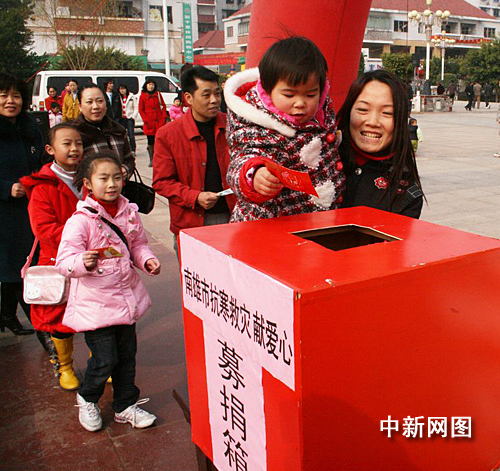南雄市借助春節(jié)人們團(tuán)聚的機(jī)會(huì),利用電視、公益告示、宣傳車等各種宣傳渠道,廣泛發(fā)動(dòng)社會(huì)各界力量,開展“我與災(zāi)民心連心”募捐活動(dòng),以各種形式為災(zāi)區(qū)送溫暖獻(xiàn)愛心。