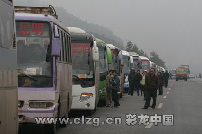 曲靖到勝境關(guān)高速是云南進(jìn)出貴州西北的要道,也是宣威到曲靖、昆明的必經(jīng)之路。前天晚上8點半,曲勝高速由于大面積結(jié)冰,不得不關(guān)閉。致使從前天開始到昨天的30多小時內(nèi),勞動力輸出大縣宣威、富源的班車都沒法發(fā)車,很多急于趕回曲靖、昆明上班的人員都滯留在家鄉(xiāng)。