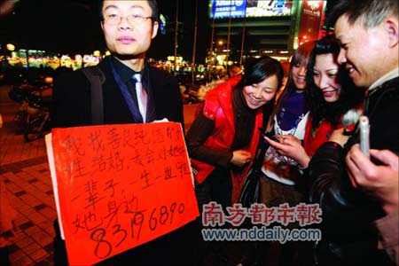 廣東一男子鬧市舉牌欲尋善良純潔女性結(jié)婚(圖)