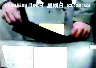 當(dāng)晚8時(shí)45分,中國銀行孝感分行保衛(wèi)部的值班人員,像往常一樣,在電視監(jiān)控中心觀察監(jiān)控錄像,突然發(fā)現(xiàn)一名穿著淺色夾克的年輕男子,走近ATM機(jī),他先掏出一張事先準(zhǔn)備好的紙片貼到ATM機(jī)上,隨后從衣服里抽出一張長(zhǎng)方形的黑色塑料片,插入吐鈔口。