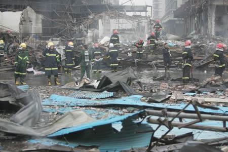 在爆炸點(diǎn)附近,2007年9月24日,廣州開(kāi)發(fā)區(qū)東區(qū)107國(guó)道左側(cè)東興市場(chǎng)對(duì)面,一間存有大量化學(xué)品的貨運(yùn)倉(cāng)庫(kù)油罐失火,10分鐘連爆7次,燒了近6小時(shí),大火殃及周邊數(shù)家企業(yè),黑煙綿延幾公里。消防部門(mén)先后出動(dòng)34輛消防車(chē),疏散周邊群眾460多人,耗費(fèi)近6小時(shí)將明火撲滅。著火倉(cāng)庫(kù)過(guò)火面積約500多平方米,所幸無(wú)人員傷亡。(趙佳月 郭小戈 張林 陳志鴻)