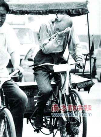 將物質生活標準壓到最低點的老人,卻把能量釋放到最高度。一年365天,他沒歇過一天。他曾在夏季烈日的炙烤下,從三輪車上昏倒過去;他曾在冬天大雪滿地的路途中,摔到溝里;他曾因過度疲勞,蹬著車睡著了……由于年事過高,冬天里他常憋不住小便,棉褲總是濕漉漉的,他就墊上幾塊布照樣蹬車跑。