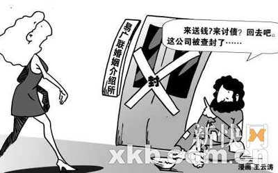 昨天下午,此前被媒體曝光騙取了多名想嫁洋老公的女子會(huì)費(fèi)的“無良婚介”廣州易廣聯(lián)婚姻咨詢公司,被廣州市工商局海珠分局等部門查封。據(jù)悉,根據(jù)《公司法》、《國務(wù)院辦公廳關(guān)于加強(qiáng)涉外婚姻介紹管理的通知》等條例的規(guī)定,易廣聯(lián)婚姻咨詢有限公司涉外婚姻介紹屬非法經(jīng)營,相關(guān)責(zé)任人將要受到刑事拘留。