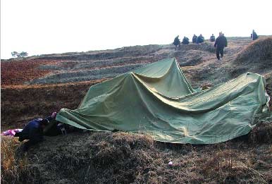 “我們這里一架飛機昨天墜毀了,駕駛員被送到縣里的醫(yī)院搶救,生死未卜!弊蛉丈衔,記者根據線索,驅車趕往駐馬店市泌陽縣銅山風景區(qū),見到了墜毀的飛機。有幾人看守著現場,飛機已經被人用帆布蓋住。帆布旁有夜里看守人員用的被子。