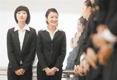 之前在外企工作的唐娜告訴記者,平常都是看到熟人時(shí)才笑,現(xiàn)在必須對視線范圍內(nèi)的每個人微笑,直到練成條件反射。而且要露出八顆牙齒,露少了不真誠,露多了不好看。很多同學(xué)都咬著筷子練習(xí),笑得臉都僵了!皣H標(biāo)準(zhǔn)微笑就是露出8顆牙齒,‘奧運(yùn)空乘’代表國家形象,你可以不用精通各國語言,但你可以用端莊大方的微笑展示我們的熱情!