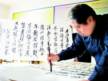 昨天,記者在延慶縣延慶鎮(zhèn)米家堡村見(jiàn)到了49歲的張海河。操著濃重延慶口音的他告訴記者:“我只有初中文化,識(shí)字不多,先是種地,后又做建筑安裝,沒(méi)想到老了老了,還能練書(shū)法,讓鄉(xiāng)親們覺(jué)得我是個(gè)文化人!”