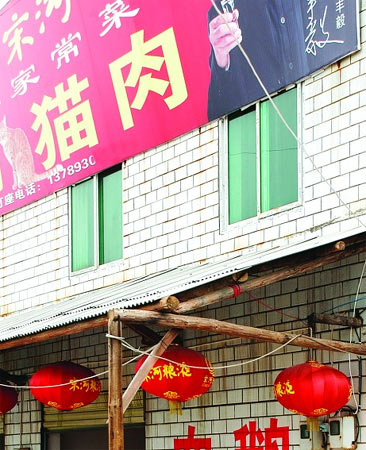 長沙市民王先生給本報(bào)新聞熱線打來電話說,23日中午,他的朋友李先生開車經(jīng)過湘潭市護(hù)潭鄉(xiāng)時(shí),無意中發(fā)現(xiàn)了張老板的店,出于好奇,他來到店里,“老板說貓肉是補(bǔ)品,每斤38元,保證新鮮。我沒吃過,想試試!崩钕壬f,剛點(diǎn)完菜,就聽到廚房里傳來幾聲凄厲的貓叫,他跑去一看,發(fā)現(xiàn)一只頭破血流的花貓?zhí)稍诘匕迳,廚師正用木棍猛打它的頭。見貓不再動(dòng)彈,廚師一手拎著貓扔進(jìn)裝滿開水的大鍋里,另一只手捂上鍋蓋。這時(shí),鍋里傳來一陣更慘烈的貓叫,幾分鐘后才恢復(fù)了平靜!疤珰埲塘!什么人會(huì)想出做這樣的菜?”等菜上了后,受驚不小的李先生沒動(dòng)筷子就急忙驅(qū)車回家。