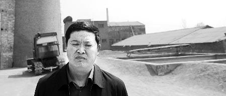 昨日上午10時(shí)許,省環(huán)保局監(jiān)察總隊(duì)負(fù)責(zé)人孫自臣帶領(lǐng)執(zhí)法隊(duì)員來(lái)到一片煙囪林立的磚窯場(chǎng),穿過(guò)一條煙塵滾滾的土路后,執(zhí)法隊(duì)員看到在一堆高10多米的礬土礦石后面就是被舉報(bào)的土煉制廠。