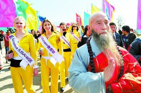國際旅游小姐游少林寺 小和尚遭美女"圍攻"(圖)