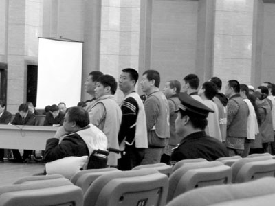 在沈陽市中級人民法院1號大法庭,吳寧和17名涉黑團伙成員同庭受審。
