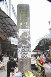 昨日記者專程來(lái)到中和鎮(zhèn)政府門(mén)前30米的一個(gè)街道拐角處看到,一塊高約5米的正方形石柱矗立在街道中央,石柱的正前方刻有“抗美援朝烈士紀(jì)念碑”9個(gè)楷體大字。碑的右面書(shū)有“謝興發(fā)、劉元明烈士,1951年12月30日敬立”字樣。紀(jì)念碑的四面都貼了不少?gòu)V告單,有“住房出租”、有“治療結(jié)核病”等,還有一些則是“性病專科”等等。紀(jì)念碑基座上,還有生意人擺放了不少干雜貨物在此兜售。