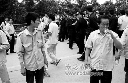 大批保安與警員前來處理事件,部分司機(jī)仍未離去。