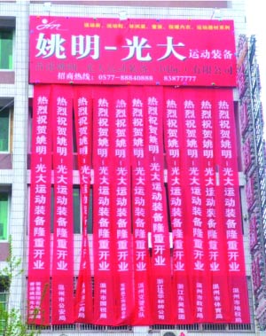 就在“最牛洗腳城”鬧得沸沸揚(yáng)揚(yáng)時(shí),在溫州本地論壇上,一個(gè)名為《姚明-光大公司涉嫌掛7個(gè)溫州政府機(jī)關(guān)祝賀條幅》的帖子就像個(gè)重磅炸彈,在當(dāng)?shù)匾鹆瞬恍〉恼饎印?/p>