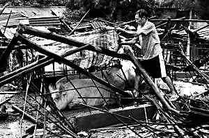 2007年8月10日,陳的復議申請還沒有得到答復,等來的卻是40多名開著勾機車而來的“神秘人”。陳煥拱稱,混亂中不知誰喊了一聲“給我砸!”幾個人沖上前剪斷電匣,勾機吊臂猛然揮起,“轟轟”幾聲,砸向靠路邊的一排豬舍。短短半個小時,3000多平方米的豬舍三分之一被夷為廢墟,數(shù)百頭驚恐的豬四處逃竄,一度引發(fā)公路上的人豬大戰(zhàn)。當晚,突降暴雨,數(shù)百頭失去遮攔的生豬再次四處逃竄,在臺風暴雨中消失得無影無蹤。