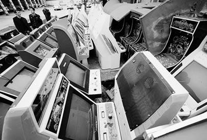 “游戲廳自從有了賭博機(jī),生意一直很好!庇螒驈d經(jīng)理陳繞華說,“颶風(fēng)賽車”一天至少賺3000元以上,“老爺車”少一點(diǎn),也有400元左右。平均每個(gè)月可賺10萬元。