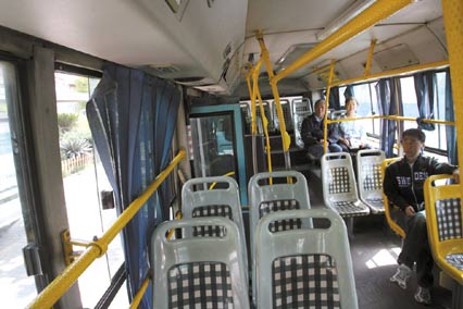 據(jù)介紹,842路使用的是中通客車(chē) (LCK6830G型),兩側(cè)的車(chē)窗都是可以打開(kāi)的,但是除了和售票員并排的兩個(gè)座位旁的欄桿設(shè)置位置較低,其余欄桿的位置差不多都在車(chē)窗中央,因此在緊急情況下,乘客也很難從打開(kāi)的車(chē)窗中逃離。