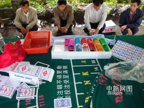 經(jīng)調(diào)查證實(shí),該賭檔莊家專(zhuān)在湖南省汝城縣與廣東省仁化縣交界的荒山野嶺中擺檔,用撲克牌以“百家樂(lè)”的方式聚賭,下注金額下限10元,最高5000元,三天前,該賭檔剛從湖南省汝城縣大坪鎮(zhèn)一野外處遷來(lái),沒(méi)想到這么快就被仁化縣警方端掉。